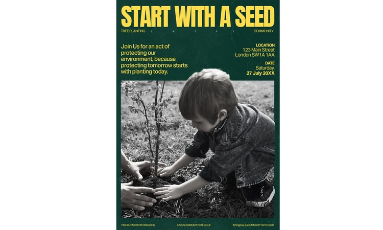 Add an interactive element to your poster with a QR code that links to a tree-planting campaign or fundraising website. Make your poster fun by adding a tear-off slip with eco-friendly pledges for people to take with them.