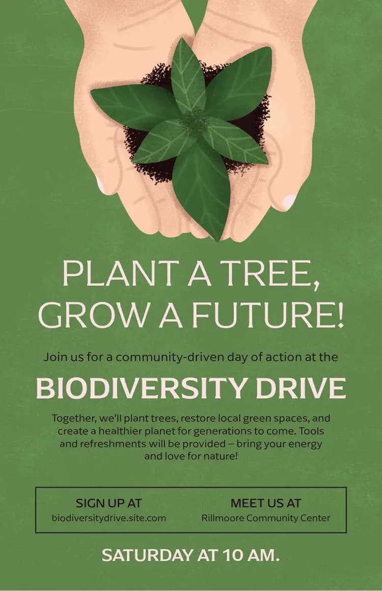- Use minimal text for maximum impact. Ensure your poster is easy to read by keeping your message short and powerful. Use a single, catchy slogan like “A greener tomorrow starts today ", and let your visuals do most of the talking.