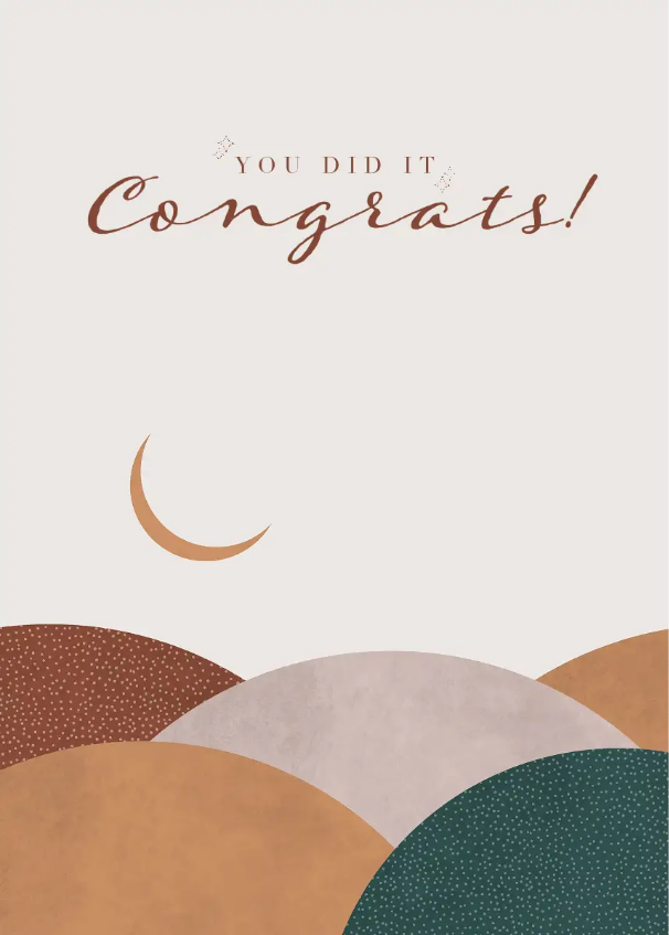 Graduating from college represents a significant milestone in a person's life. Congratulate them with a personalised card. Choose a template, customise your message, add a photo of the graduate or their school emblem and share your congratulations card with them on their special day.