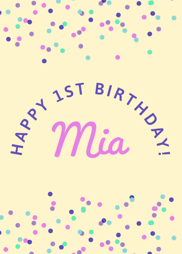 Personalised 1st Birthday messages.
