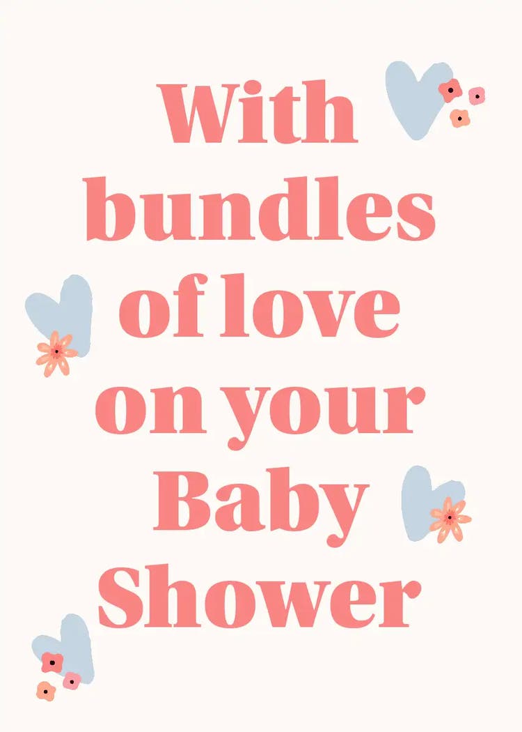 - Make a personalised greeting card. With Adobe Express, you can easily create a custom baby shower card. It’s a great way to share wishes that celebrate the arrival of a baby sister or brother. You can also dedicate it to a soon-to-be parent. Choose from our wide variety of templates that match your style and pair it with a beautiful message from our collection of wishes.