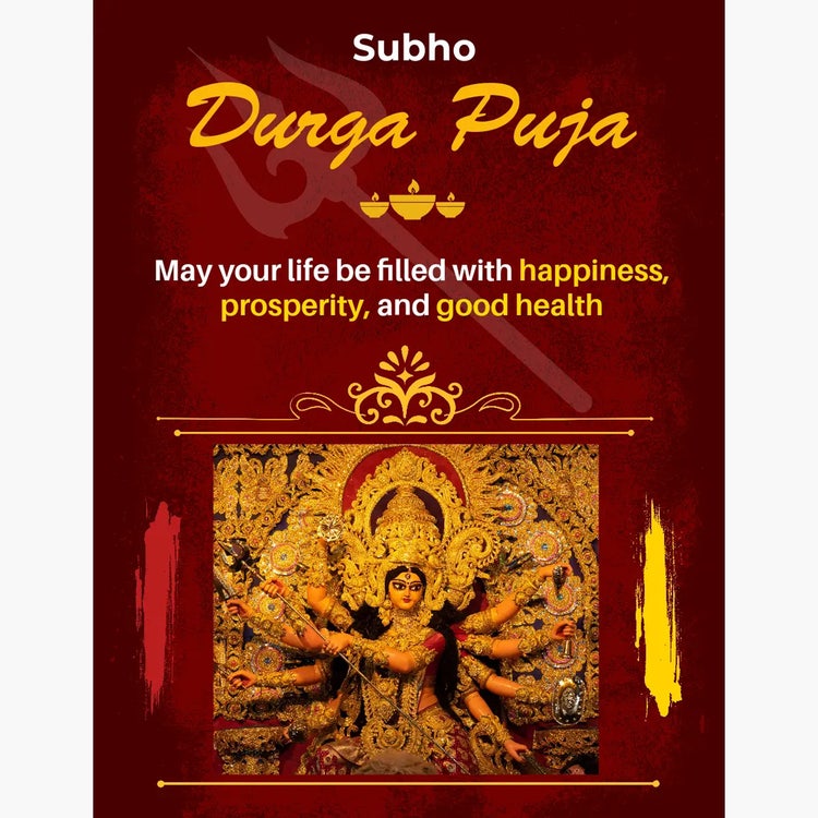 - Try using illustrations of the dhunuchi naach, traditional alpona patterns or symbolic imagery of Goddess Durga to bring your designs to life. Red and gold decorative borders can add a festive, auspicious touch, while backgrounds inspired by iconic pandals or scenes from sindoor khela and aarti lend cultural depth. For a more spiritual feel, consider including a meaningful quote or chant like “Durga Dugga bole ja, bhoy ke pichhe fele ja” to make your message even more heartfelt.