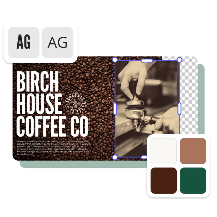 Put your brand front and center with the photo background changer. Easily create the perfect backdrop and maintain brand consistency across all your visual content by uploading your logos, fonts, and colors. Deliver a sleek, cohesive look across all your projects that you can recreate with ease every time. Consistency has never been this effortless.