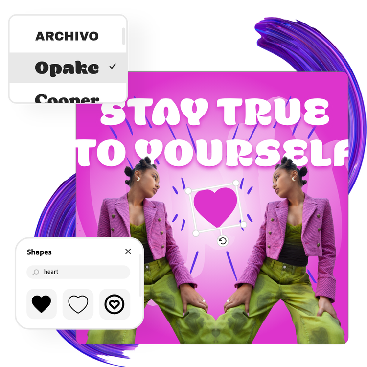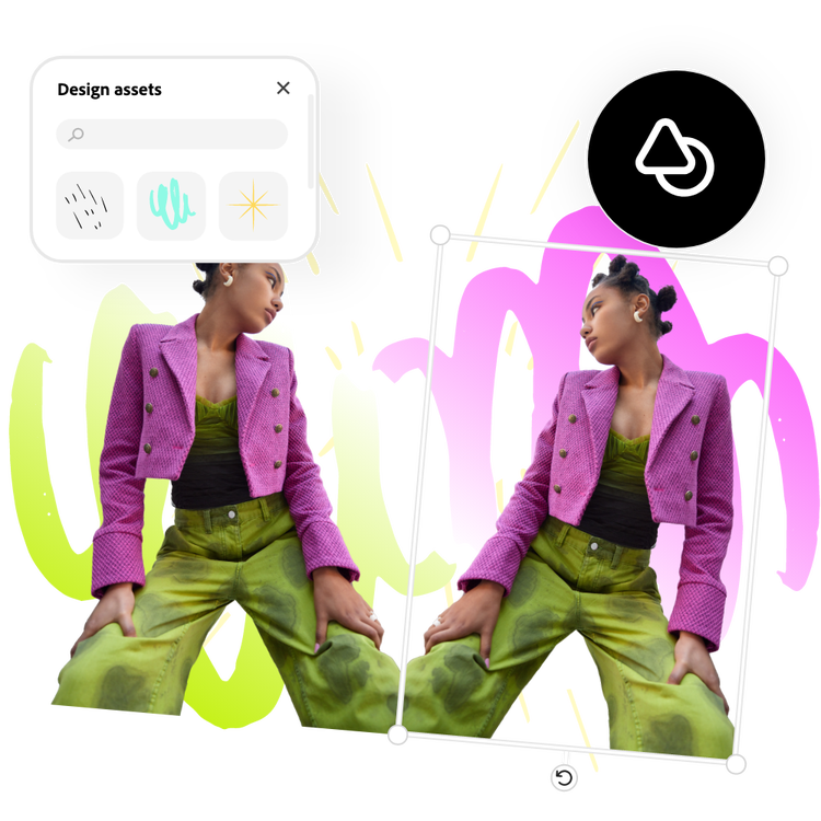 Take advantage of the creative tools powered by Adobe Express. Add icons or graphics to your image, select it all, duplicate it, and flip it for a dynamic mirror design. Finally, apply filters or animation to polish it all off.