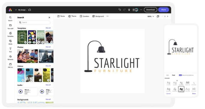 You can start your project from the Adobe Stock royalty-free photo, video, or audio collection.