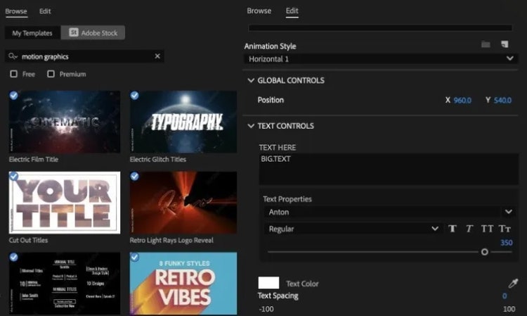 Simplify your motion designs with easy-to-use templates you can customise right inside Premiere.