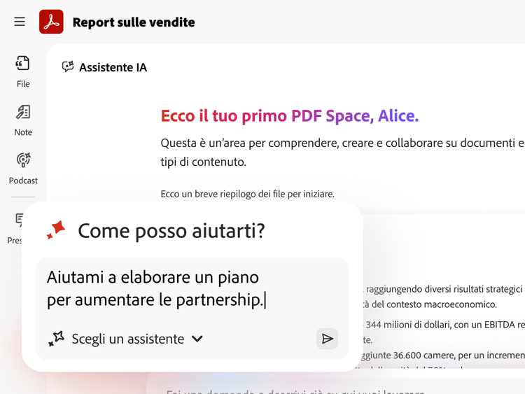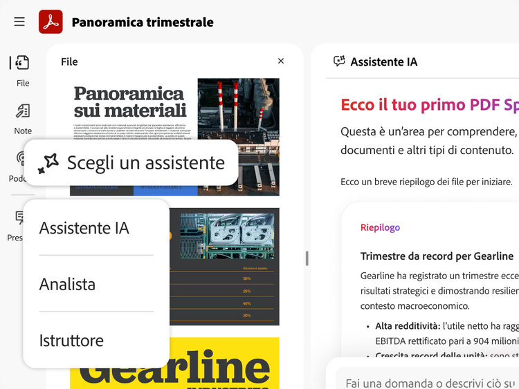 Genera riepiloghi e ricava informazioni chiave con citazioni precise in un clic. Fai domande all’Assistente IA per ottenere risposte e indicazioni concrete sui passi successivi.