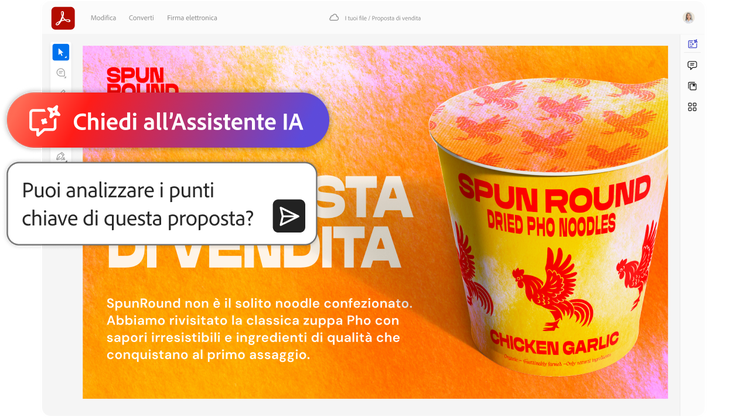 Con Adobe Acrobat Pro e l’Assistente IA hai a disposizione strumenti affidabili per modificare e firmare PDF, condividere file e comprendere più rapidamente i documenti.
