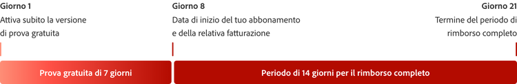 Prova Acrobat Pro gratuitamente per 7 giorni. Se dovessi avere bisogno di più tempo per provare tutte le funzionalità, avrai altri 14 giorni per annullare la tua iscrizione e ricevere un rimborso completo.
