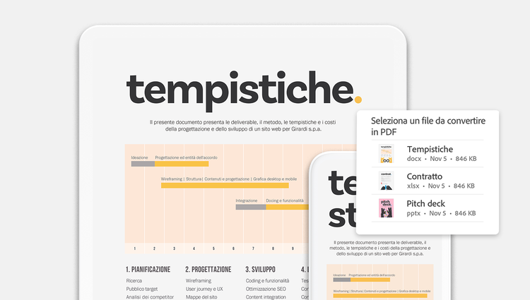 Trasforma il tuo PDF in un altro tipo di file e viceversa. La conversione tra tipi di file diversi è semplice e intuitiva con Acrobat.