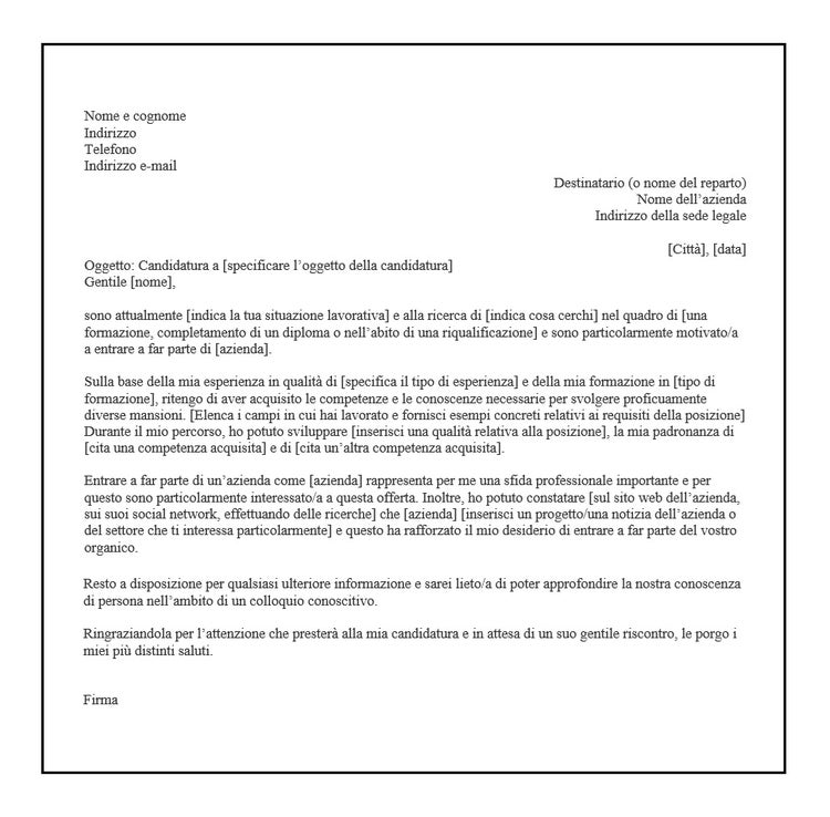 Quando i recruiter e i responsabili delle risorse umane ricevono il CV e la lettera di presentazione, spesso devono decidere molto rapidamente se procedere o meno con la tua candidatura. La lettera di presentazione deve essere adattata alla posizione specifica a cui aspiri. Chi si occupa di selezionare il personale sa riconoscere un modello standard, perciò assicurati di adattare il testo e personalizzarlo per ogni posizione e per ogni azienda che ti interessa. La candidatura deve mettere in luce le tue competenze e i risultati che hai già ottenuto, lasciando trasparire anche la tua personalità.