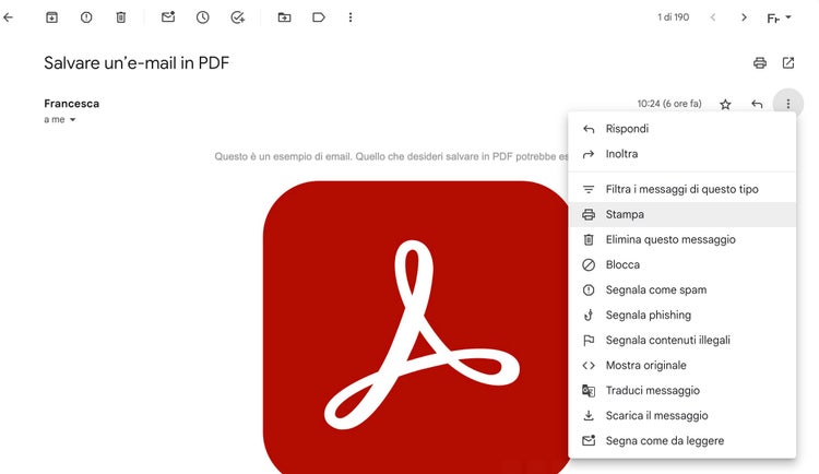 Come salvare un’e-mail in PDF (esempio di Gmail).