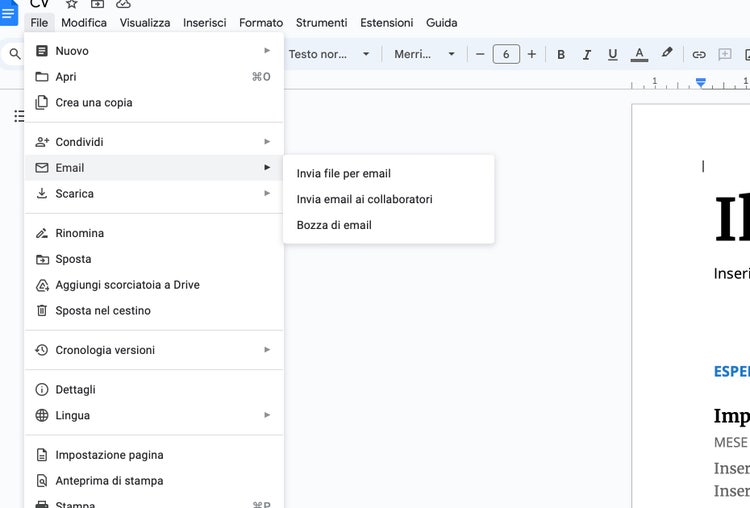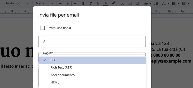 In dettaglio: convertire un file di Documenti Google in PDF tramite e-mail