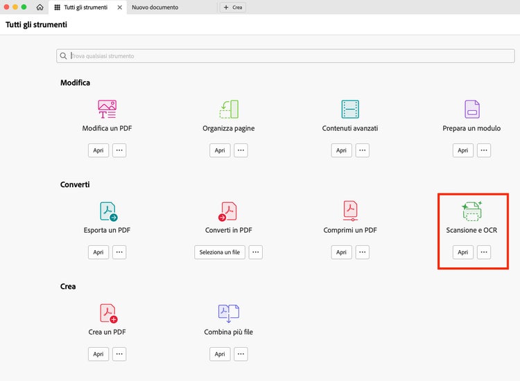- Sfrutta al massimo il formato PDF con i numerosi strumenti di modifica di Adobe Acrobat. Li trovi in Strumenti > Scansione e OCR.
