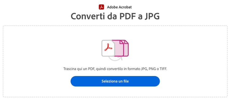 - Accedi a Adobe Acrobat online e seleziona Converti > PDF in JPG. Se desideri inserire una sola pagina da un file con più pagine, puoi anche estrarre le pagine da un PDF su Acrobat online. È un’operazione semplice e rapida.