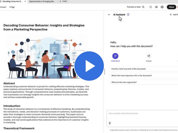 Ricordati infine che per aumentare la concentrazione puoi farti aiutare dalla tecnologia. Se stai leggendo un testo molto pesante o noioso, prova con un approccio più interattivo. Con la Chat IA di Adobe puoi interagire in modo dinamico con il documento che devi studiare, ottenere riassunti o risposte sintetiche e focalizzarti solo sui concetti chiave, migliorando la comprensione e riducendo la fatica mentale.