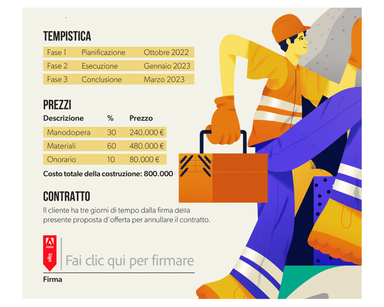 Combina e adatta contenuti e termini e crea proposte e contratti perfetti. Condividili per la revisione e l'approvazione interna e poi inviali per la firma elettronica.
