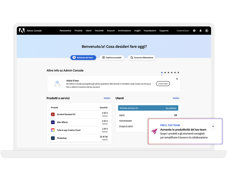 Assegna e riassegna le licenze in tuo possesso con una console di amministrazione centralizzata. Questo semplificherà anche la fatturazione per la tua azienda.