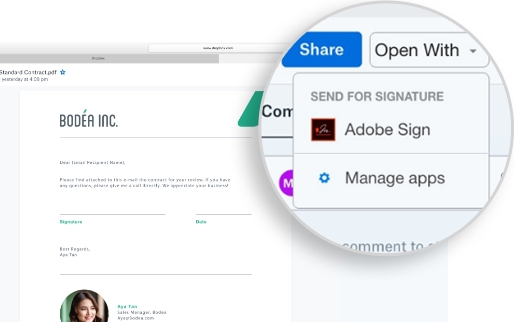 Con Acrobat puoi aprire, modificare, firmare e aggiornare i tuoi PDF direttamente in Dropbox.