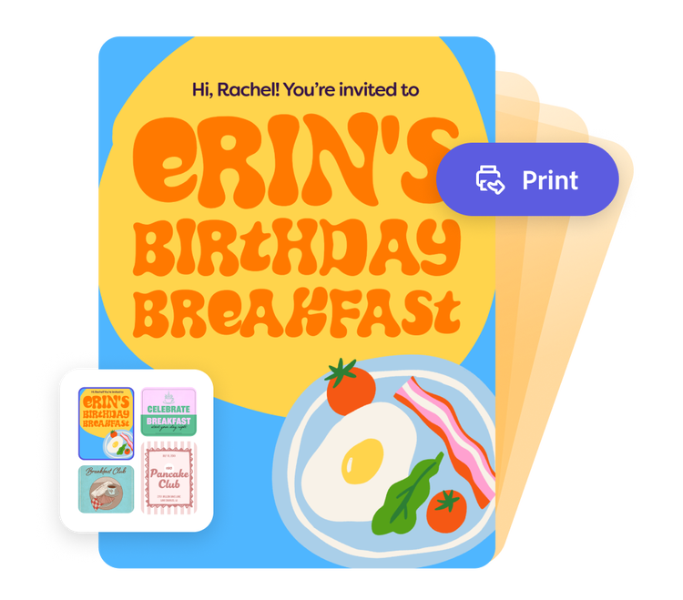 Se invii l'invito alla colazione in formato digitale, puoi scaricarlo come file PDF, JPG o PNG. Se preferisci ricevere stampe professionali, gli utenti desktop di Adobe Express residenti in Stati Uniti, Regno Unito, Australia o Canada possono ordinare direttamente dall'app e ricevere stampe di alta qualità in pochi giorni.