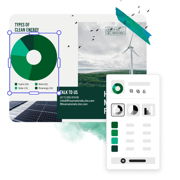 Comunica efficacemente il tuo messaggio con diagrammi e infografiche in linea con il marchio realizzati in Adobe Express. Per i titolari di aziende, includi grafici a torta o di avanzamento per visualizzare i dati chiave. Crea timeline per evidenziare i milestone principali o delineare gli obiettivi futuri. In poco tempo, avrai un opuscolo accattivante e di qualità professionale, pronto per essere condiviso ovunque.