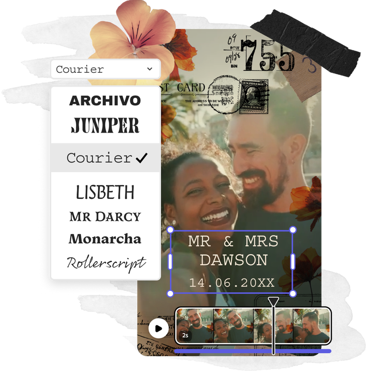 Incorporare elementi nostalgici nel tuo video anniversario può aumentarne l'impatto emotivo e Adobe Express lo rende facile. Utilizza vecchie foto e video clip per evocare bei ricordi. Aggiungi didascalie e date significative per contestualizzare. Applica filtri ed effetti vintage per un'atmosfera senza tempo e completa le immagini con una narrazione o una voce fuori campo per fornire un contesto e raccontare la storia dietro le immagini.