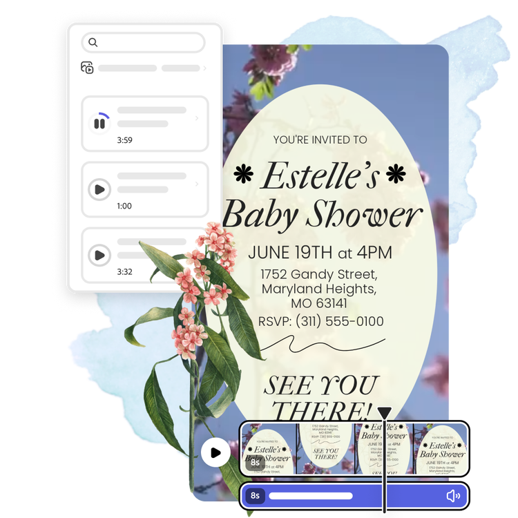 Crea splendidi video invito personalizzati per qualsiasi evento o occasione con il creatore di video invito di Adobe Express. È facile e veloce, grazie a semplici strumenti di editing video e a modelli personalizzabili.