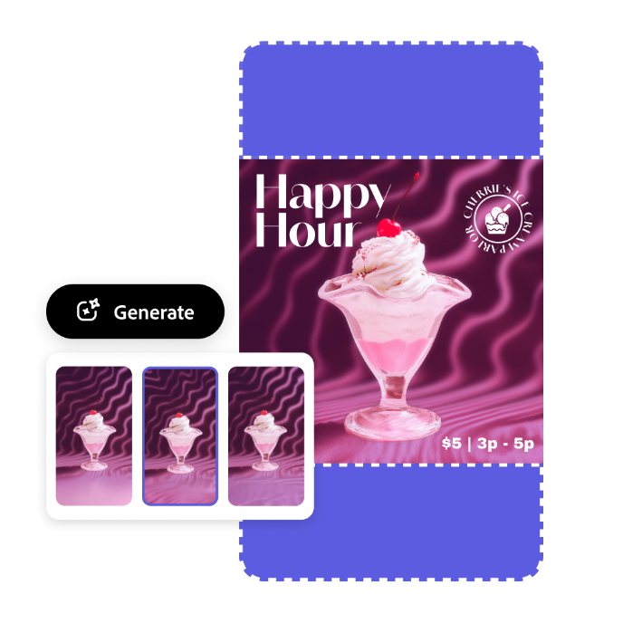 Ridimensionare l'immagine o il progetto è solo l'inizio. Porta i tuoi annunci Facebook, i design delle e-mail, i volantini e altro ancora a un livello superiore con l'editor Adobe Express. Applica all'istante i colori, i font e i loghi del tuo marchio con kit di facile utilizzo e aggiungi effetti animati per far risaltare i tuoi progetti. Con Adobe Express, ogni creazione ridimensionata mantiene un aspetto curato e uniforme, pronta a lasciare il segno su qualsiasi piattaforma. Nessuna esperienza di progettazione richiesta.