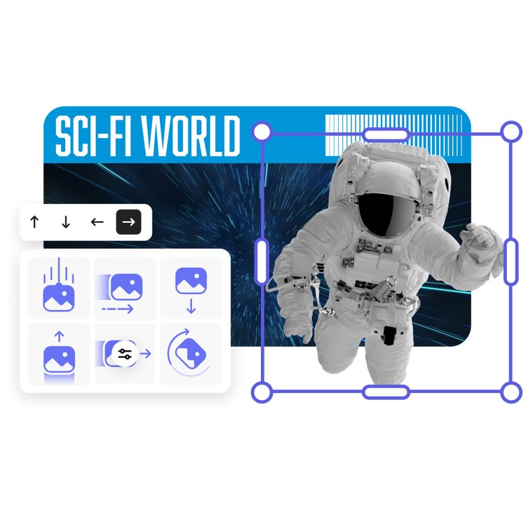 Seleziona la tua foto, aggiungi icone, testo e grafica, quindi sperimenta con le opzioni di animazione per aggiungere movimento al tuo design.