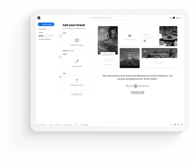 Go to spark.adobe.com and sign-in. Visit the brand tab to set your brand up in Spark. Awesome! You can use premium and free templates, as well as all of Spark’s magical branding features. If you have more than one brand, sub brand, or look-and-feel, set up as many as you’d like.