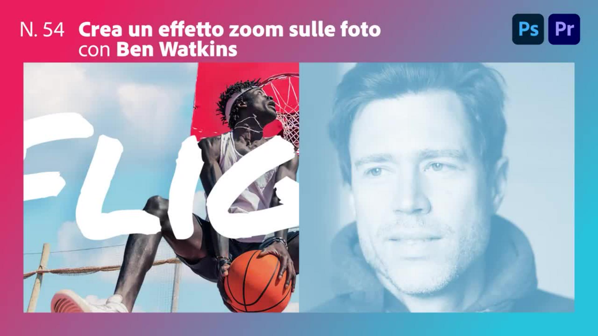 Segui i consigli di Ben Watkins per isolare gli oggetti su livelli separati in Adobe Photoshop e poi animarli in Adobe Premiere Pro per simulare uno zoom sulla scena.