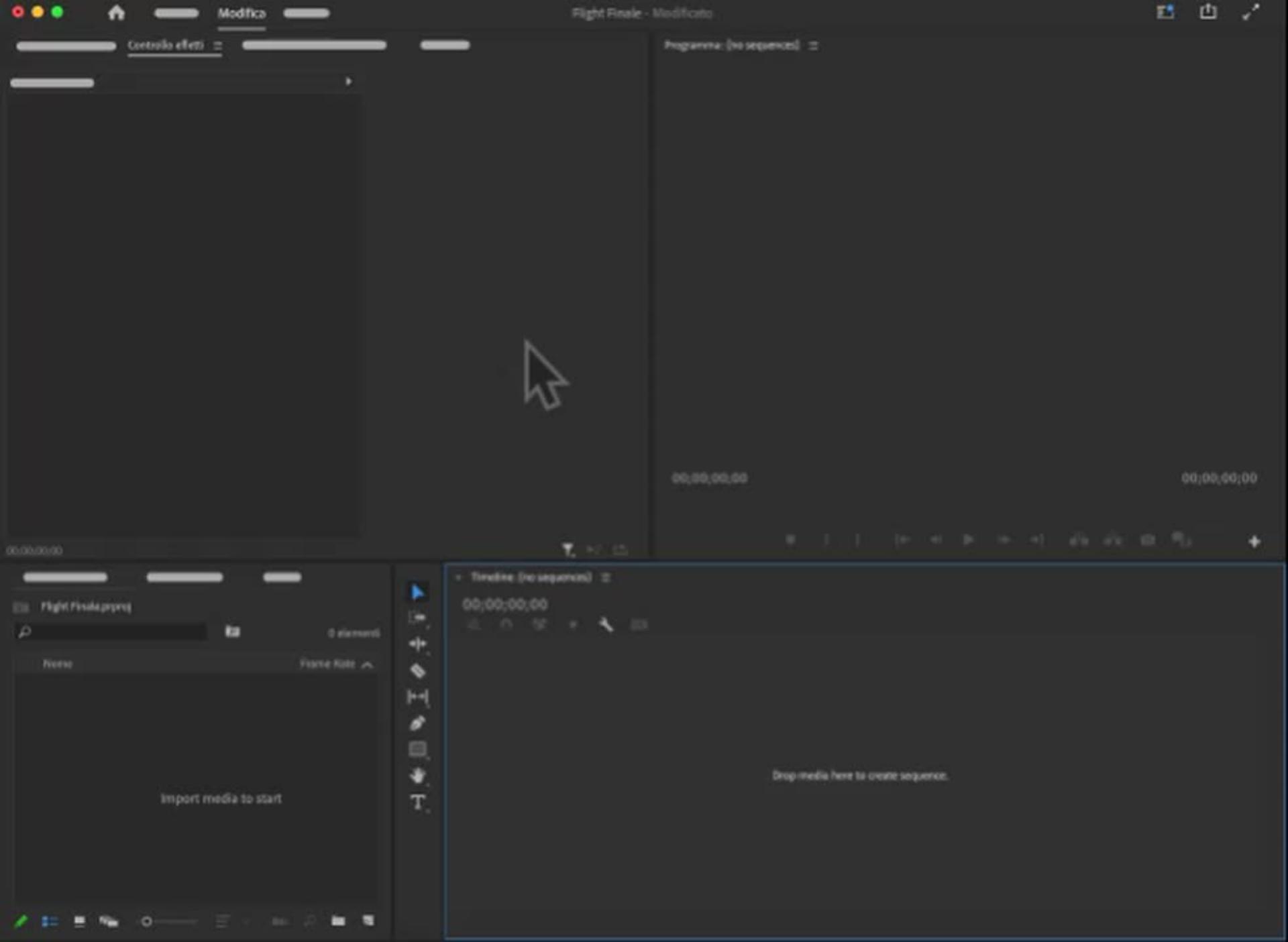 In Premiere Pro, crea un nuovo progetto e importa il file PSD che hai creato. Scegli Importa come > Sequenza dalla finestra Importa e assicurati che tutti i livelli siano selezionati. Inoltre, verifica che il parametro Dimensioni metraggio sia impostato su Dimensioni documento in modo che il formato corrisponda al file creato in Photoshop.