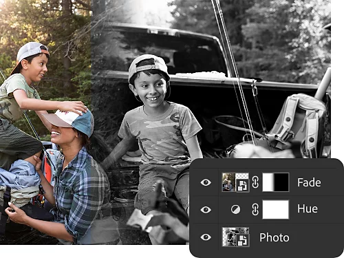 Con i livelli di regolazione, puoi intervenire su colori e toni in modo non distruttivo, così le modifiche non intaccheranno l’immagine originale. Sfuma i colori, modifica la tonalità, regola la saturazione della foto e molto altro.