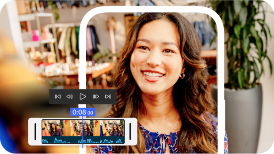 Scorri e scivola fino a trovare il momento perfetto, sovrapponi le riprese per sequenze multicamera, personalizza i titoli animati e molto altro. Oppure usa l'IA con la Modifica basata su testo per rifinire, riordinare e tagliare facilmente le clip.