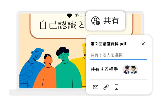 スキャンした文書は他のデバイスやチームへのURL共有が可能に。