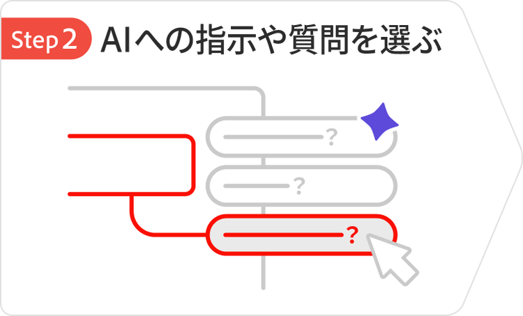 2. AIが自動で作成した質問から、知りたい内容を選ぶか、チャット形式でAIとやりとりできます。
