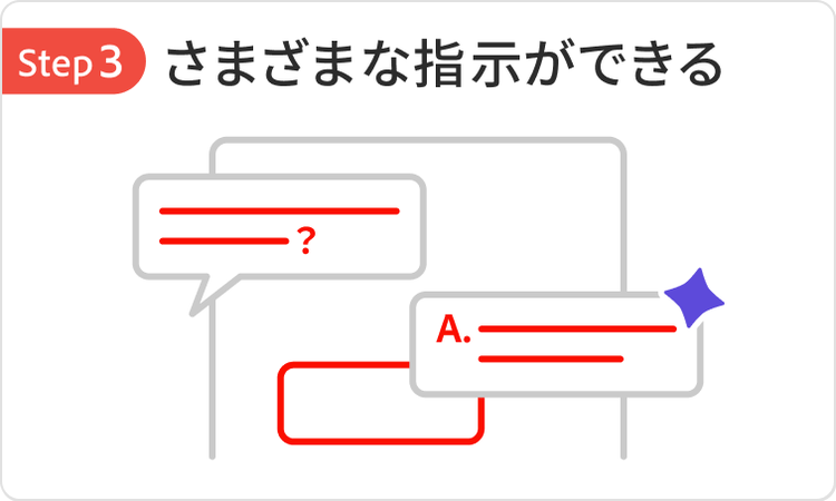 PDF、Microsoft Word、Microsoft Powerpoint、テキストファイル、RTFファイルなどの文書をアップロードして、AIへの質問や指示を選ぶか、任意の質問を入力すれば、文書の内容を効率よく把握できます。