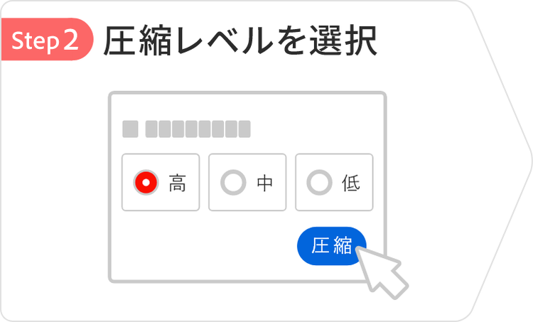 2. できるだけファイルサイズを軽量化したい場合は、圧縮レベル「」を選択します。画質を高く保ちたい場合は、圧縮レベル「」または「」を選択してください。