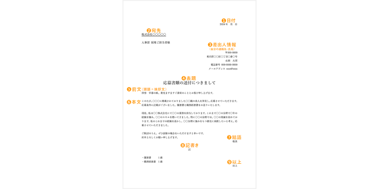 送付状に必要な項目は以下の9つです。