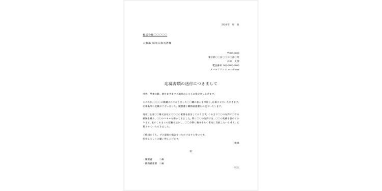 就職や転職活動に最適な送付状のテンプレートです。履歴書・職務経歴書に同封して活用できます。