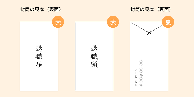 なお、ビジネス用封筒には長形3号、角形2号などいくつかのサイズがありますが、中に入れる退職届・退職願に合った封筒サイズを選ぶことが大切です。退職届・退職願の一般的なサイズはB5〜A4ほどのケースが多いため、「長形4号」「長形3号」の封筒を用意しておくと安心でしょう。