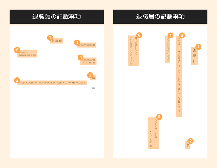 テンプレートと照らしあわせながら、これから解説する内容を確認することで、さらに理解が深まり、ミスなく退職届が作成できるはずです。