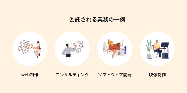 委託される内容は多岐にわたり、デザイン業務やコンサルティング業務など、様々な業界・業種で活用されています。
