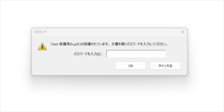 まず、パスワードで保護されたPDFファイルをダブルクリックします。表示されたポップアップ内にある「パスワードを入力」の欄に設定されたパスワードを入力し、PDFファイルを開きましょう。