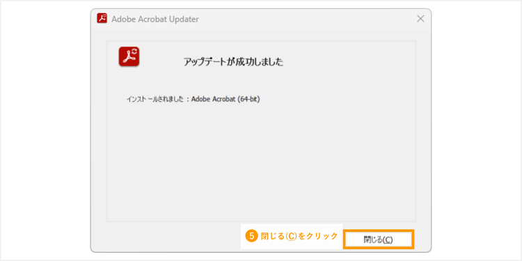 インストール後、以下のような画面が表示されたら、ソフトの更新は完了です。「閉じる」をクリックして、更新作業を終了しましょう。