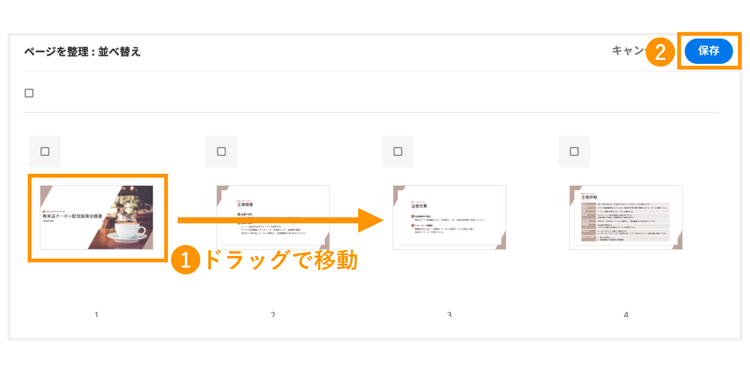 【手順3】移動させたいページをクリックし、移動させたい場所にドラッグ&ドロップする
