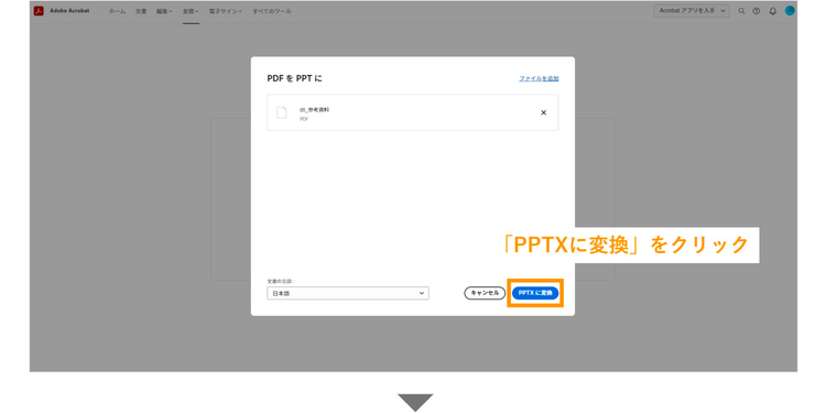 以下の画像は、PDFをPowerPointに変換する場合の手順です。