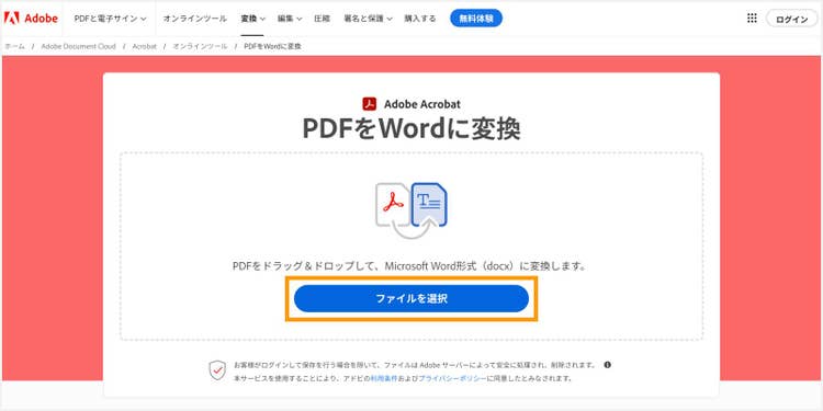 Acrobat オンラインツールでPDFをWordに変換する方法
