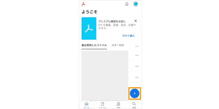 アプリを開き、右下の青い「+」ボタンをタップして、任意のファイルを開きます。