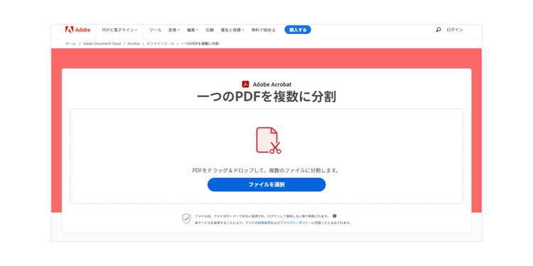 そのような時に活用したいのが、Acrobat オンラインツールの「分割」機能です。